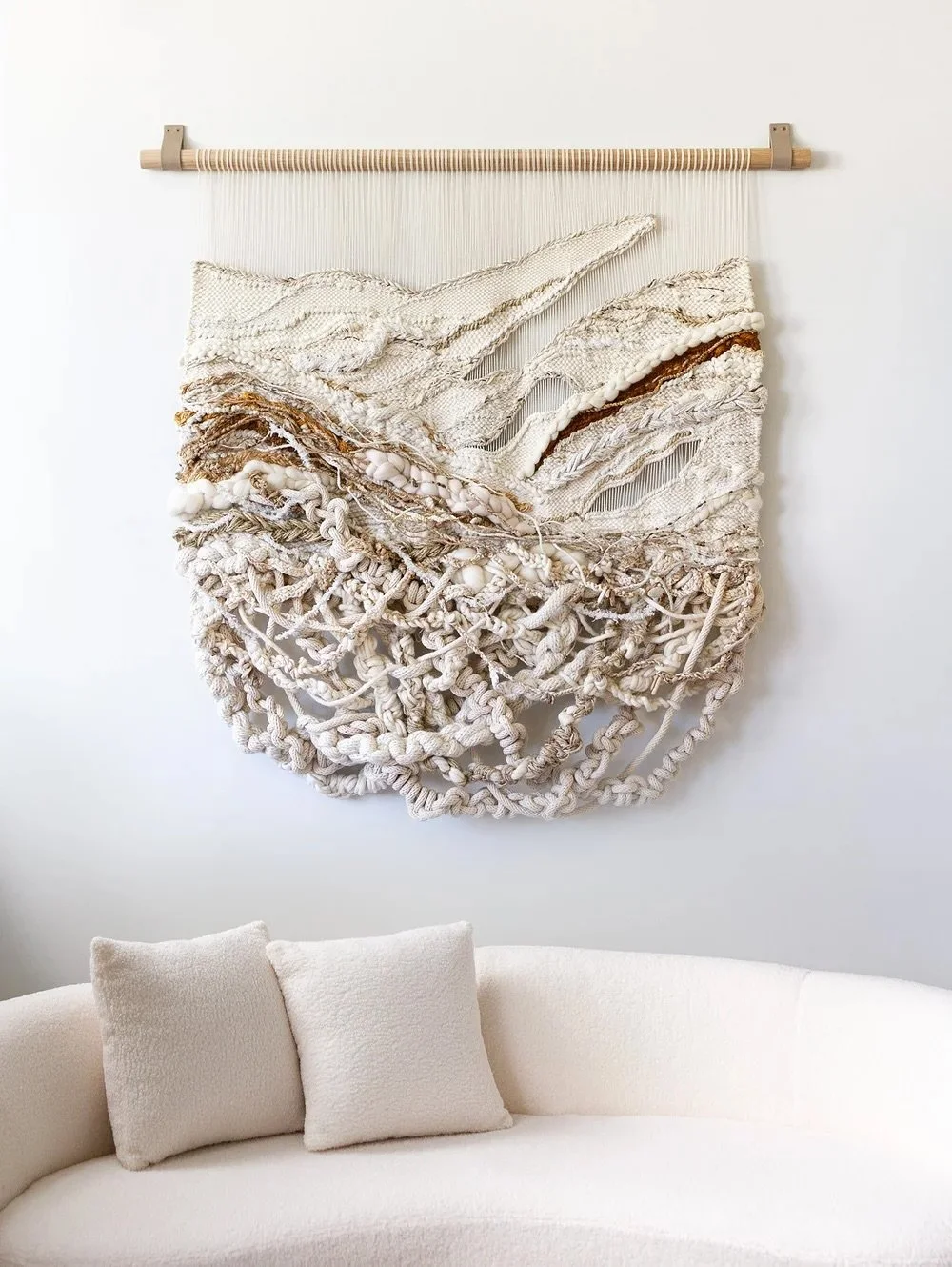 Their process is intuitive and meditative. Describing it as "breathing through our hands," the sisters allow each piece to grow naturally, guided by rhythm and repetition. Working on custom-built frame looms, they embrace the slow, physical nature of weaving, finding meaning in the patience, balance, and presence it requires.